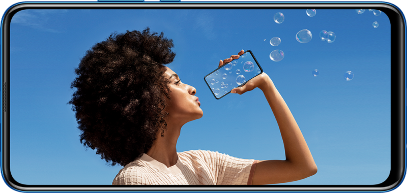A 196,6 grammos tömeg persze érthető a már-már táblagépes LCD képernyő mellett, amely 1080 x 2340 pixeles, ugyebár noccs nélkül - igazából csak alul maradt némi káva. A szelfikamera ugyanis a készülékházba költözött és motorikusan emelkedik ki, ami éppenséggel hasznos új trend, ha ezzel általában ugrik is a por- és vízálló védelem. Ami egyébként sem a középkategória tulajdonsága.