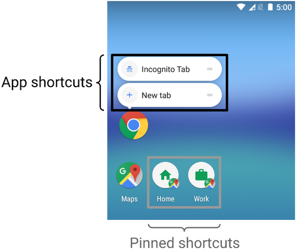 A kép-a-képben mód (PIP) mód leginkább multimédiás multitasking során lesz hasznos, lehetővé teszi ugyanis mondjuk a videók átméretezhető, lebegőablakos megjelenését, így elszakadva a szimpla, kettéosztott képernyős módtól, melynek a lehetőségei szintén bővülnek. A Google szeretné az űrlapok és mezők (e-mail cím, felhasználónév, jelszó, bankkártya adatok stb.) egyszerűbb, gyorsabb kitöltését (autofill framework), itt is a fejlesztők dolga lesz a kapcsolódó kódsorokat beépíteni, hogy aztán különféle appokban ugyanazt az információt könnyedén vagy teljesen automatikusan be tudja vinni a felhasználó. Az egyes appok képesek lehetnek automatikusan gyorsindító ikonokat létrehozni, alább a Térkép mellett az egy gombnyomásos haza- vagy munkahelyre való navigálás a példa. Ezeket kézzel most is létre lehet hozni a Pixel Launcherben a 7.1.1-es telefonokon.