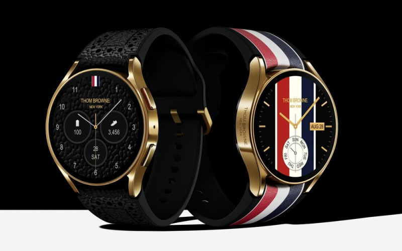 Az exkluzív dizájnnal rendelkező készülékhez harmonizáló kiegészítők is tartoznak, ezúttal a Galaxy Watch6 Thom Browne kiadása arany tokozással, gravírozott brandmegjelöléssel és két eltérő stílusú szíjjal. A fekete bőrszíj elegánsabb alkalmakra, a piros-fehér-kék sávos hátköznapibb megjelenéshez készült, az S Pen pedig szintén arany felirattal és passzoló tokkal jelzi, hogy a kollekció része. Az impozáns csomag szeptember 12-től lesz elérhető limitált példányszámban a kijelölt piacokon.