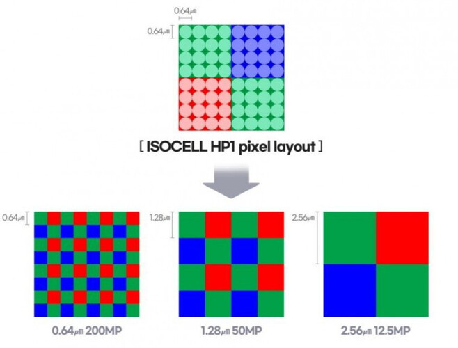 A Samsung ISOCELL két új mobilos kameraszenzort is bemutatott, a 200 megapixeles felbontású, HP1 névre hallgató érzékelőjük talán a jövő év eleji Galaxy S22 Ultrában lesz kipróbálható. Az 1/1,22" hüvelykes fizikai mérettel rendelkező ISOCELL HP1 kétféle pixelegyesítéssel fog működni a mindennapokban: ha rosszabbak a fényviszonyok, 200 megapixeles felbontását kétszer negyedeli le, így 12,5 megapixeles fotók születnek, a hatás pedig 2,56 mikronos szenzorpixellel olyan, mintha egy lényegesen nagyobb szenzor dolgozna a háttérben.