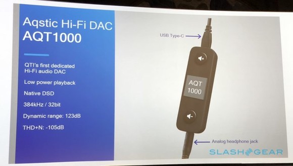 A specifikáció alapján kimondottan jó kütyüre számíthatunk: natívan tud DSD-t kezelni, akár 32-bites, 384 kHz-es zenei anyagot továbbít kompresszálás nélkül, ezen kívül 123 dB-s dinamikatartományt és -105dB alatti torzítást ígér. Az AQT1000-rel jellemzően a különböző gyártók hangkeltőibe építve fogunk találkozni, természetesen már csak 2018-tól.
