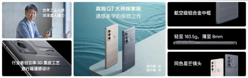 A különleges dizájnt ismét Naoto Fukasawa, japán dizájnernek köszönhetjük, akit (nem vicc) a bőröndök ihlettek meg, a szürke és halvány barack árnyalatú modellek vegán bőr hátlapjának, puha, valóban bőrszerű tapintása is ezt idézi. A Realme Master Edition 8/128 GB-os kiszerelésben 113 ezer forintnak megfelelő jüanon nyit Kínában, a 8/256 GB-os verzióért pedig 122 ezer forintnak megfelelő jüant kell fizetni.