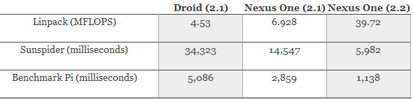 A Google I/O konferencia során hivatalosan is leleplezésre került a már sokat pletykált Android 2.2 Froyo operációs rendszer, mely az előzetes információknak megfelelően sokkal fürgébb lett elődjénél. A Linpack által mért 5,7-szeres lebegőpontos számítási sebesség valós alkalmazások esetén „csupán” másfél-kétszeres sebességnövekedést jelent, ám ez a fajta sebességnövelés is egyértelműen rávilágít arra, hogy a korábbi platformok mennyire gazdaságtalanul bántak az erőforrásokkal.