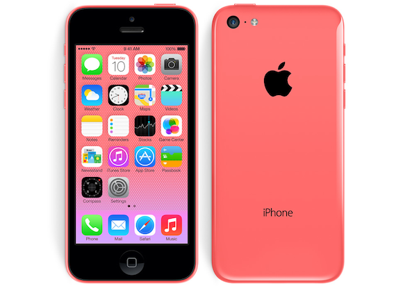 A tegnapi bejelentésen előbb rántották le a leplet az iPhone 5C-ről, mely gyakorlatilag egy fém kerettel megerősített polikarbonát készülékházba épített iPhone 5. Kiterjedése 124,4 x 59,2 x 8,97 milliméter, tömege pedig 132 gramm (iPhone 5: 123,8 x 58,6 x 7,6 milliméter, 112 gramm), fehér, pink, sárga, kék és zöld színekben kerül a boltok polcaira.