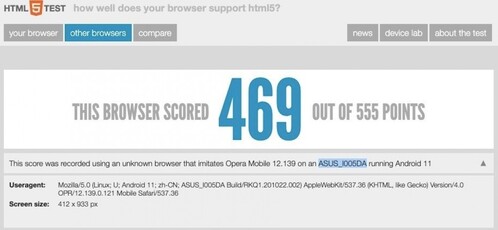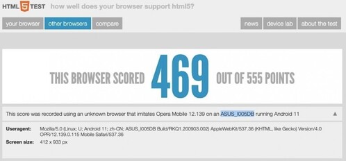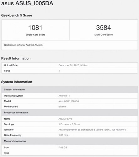 A HTML5test végeredménye 469/555 pont lett, a Geekbench pedig 1081/3584 pontos végeredménnyel zárult, mindezt 8 GB RAM-mal, Android 11-gyel és a Lahaina fantázianevű, Snapdragon 888-ra utaló rendszerchippel.