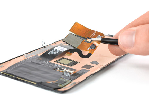 Más kérdés, hogy jókora lett a belógó szenzorsziget, cserébe fürge és megbízható 3D arcazonosítás is opció a képernyőbe integrált ujjlenyomat-olvasó mellett. Ez konkrétan az optikai fajtából való a jövőre várt, ultrahangos helyett, így vastag képernyővédő üveg applikálása negatívan befolyásolhatja a feloldás hatékonyságát. Az iFixit lencsevégre kapta a technikailag a képernyő mögé elhelyezett, Goodix gyártású egységet.
