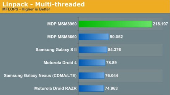 Az Anandtech nemrég górcső alá vette a közelgő Mobile World Congress alkalmával kiállításra kerülő kétmagos Qualcomm Krait S4 processzort, mely sebesség és energiatakarékosság terén is komoly előrelépést ígér. Az előzetes tesztek alapján a 28 nanométeres gyártástechnológiával készülő MSM8960 számítási teljesítmény terén akár 240 százalékkal is gyorsabb is lehet, mint a 40 nanométeres MSM8660. Grafika terén az előrelépés sokkal kevésbé látványos, bár a 400 MHz-es órajelen futó Adreno 225 mag még így is közel kétszeresen túlmutat a 266 MHz-es Adreno 220 teljesítményén.