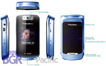 Blackberry, famous for their candybar form-factor handsets, are trying something radically different – a clamshell phone. There is no exact info on its features, but it's expected to have a 240 x 320 external and a 128 x 160 internal display, a 2 MP camera, 3.5 mm jack connector and EDGE and WLAN support. According to the picture the keyboard will be the SureType from Pearl phones, that has the usual trackball as a navigation control. The handset currently known as Kickstrt is expected to become available this year at T-Mobile.