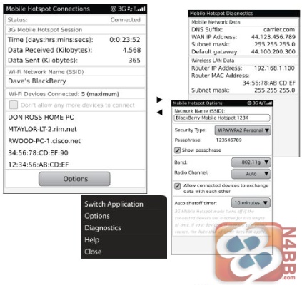 Az N4BB értesülései szerint a BlackBerry operációs rendszer 6.1-es változata a konkurens platformokhoz hasonlóan beépített WLAN Hotspot funkcióval is bír majd, mely mellett NFC támogatásra is számítani lehet. Az előzetes információk alapján a Research In Motion készülékei egyszerre maximum 5 WLAN eszköz kiszolgálására lesznek alkalmasak, ám eközben a Bluetooth modul használata korlátozásra kerülhet. A készülék üzemidejének megfelelő szinten tartása érdekében a WLAN Hotspot szolgáltatás egy bizonyos inaktivitási idő után automatikusan kikapcsolásra kerül, de természetesen csak akkor, ha egyetlen külső eszköz sem csatlakozik hozzá. A N4BB szerint a Hotspot funkció konfigurálása közvetlenül a kapcsolatok menüből lesz majd elérhető.