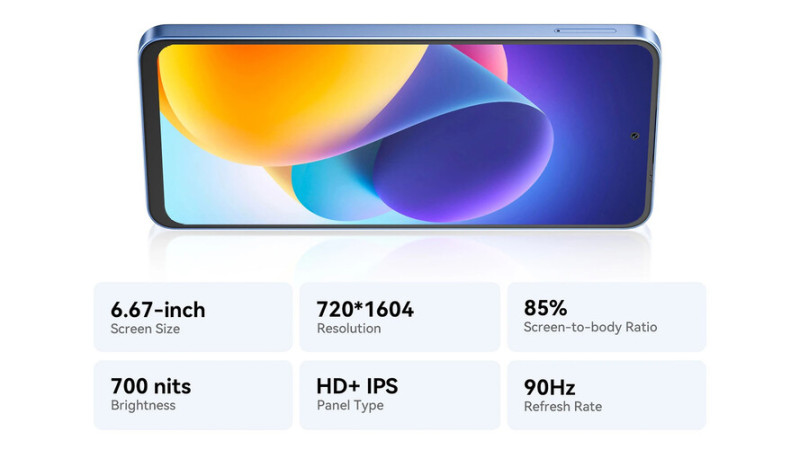 A hátlapon az iPhone Pro telefonokéhoz nagyon hasonló elrendezésben egy 50 megapixeles Samsung JN1-es érzékelővel szerelt főkamera (f/1,8, 1/2,76”), mellette egy 2 MP-es makró és egy szintén 2 MP-es mélységérzékelő található. Az előlapon egy 8 MP-es kamera lyukad a 6,67 hüvelykes IPS LCD kijelzőbe. A panel HD+ felbontású 720 x 1604 pixellel, de a 90 Hz-es képfrissítést ez is támogatja. A márka szerint a kijelző képes a 700 nites fénysűrűség elérésére.