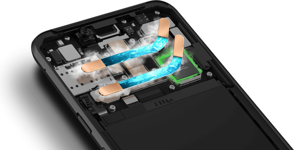 A hardver maradt, viszont a Snapdragon 845-ös központi feldolgozó egységet és Andreno 630-as grafikus processzort hűtő bordákat vízhűtésre cserélték. A dupla hőcső közvetlenül érintkezik a processzorral, így hatékonyabb hűtést biztosít 10 000 mm2-s hűtőfelületen. Ez 12 fokkal hűvösebb működést és hússzor hatékonyabb hűtést jelent. Már, ahhoz képest, hogy ha nem lenne benne a két hőcső.