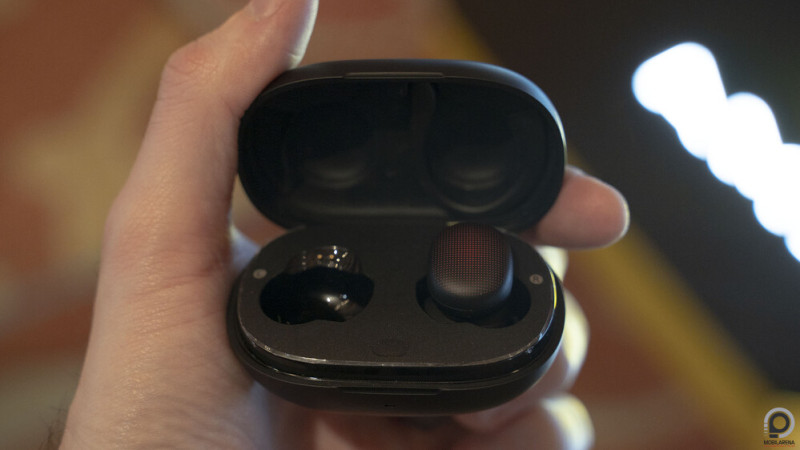 A termék a szokásos módon épül fel, adott egy töltős tartó, valamint két kicsi, fülbe illeszthető modul, amelyek egész jól néznek ki ahhoz képest, hogy alapvetően mekkora területen tudtak a formatervezők alkotni, főleg a fekete-piros kombináció lett egész vagány. De a töltőtokban találunk még két fülkampót is, amelyek mágnesesen tudnak rápattanni a fülbigyókra, így stabilabb tartást adnak különböző mozgásformák végzése közben.