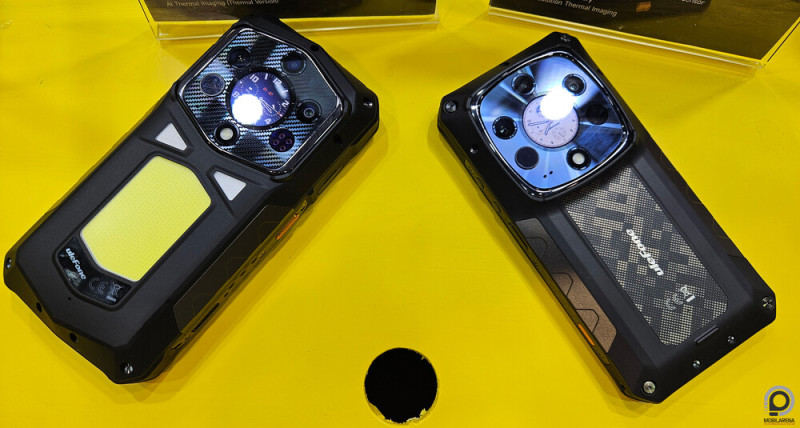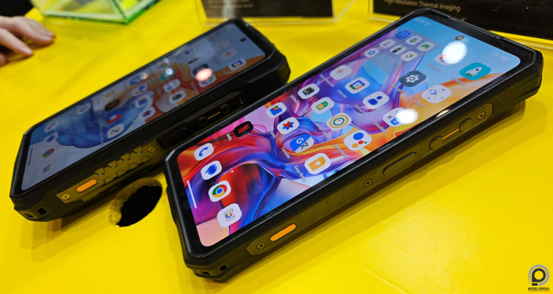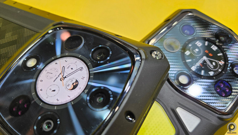 Kijelző kapcsán nincs eltérés: 6,67 inches AMOLED panel van a telefonokban, ez önmagában ritkaság a strapa műfajban, nem is beszélve a 120 Hz-es frissítésről. A poén a hátlapon van: a kamerasziget közepén egy kerek OLED panel ücsörög, amely érintésérzékeny, nem csak értesítések kijelzésére alkalmas, hanem widgetek között is lapozhatunk innen indítva a zenelejátszót, vagy éppen a kamerát, így alkalmas arra is, hogy a főkamerával szelfizzünk. Azzal a kamerával, ami egy Sony IMX989-es szenzor, vagyis a piac egyik csúcskategóriás modulja - de abban megegyeztünk a gyártó munkatársával, hogy ehhez jó algoritmusra is szükség lesz. A 64 megapixeles infrakamera mellett hab a tortán a hőkamera jelenléte is.