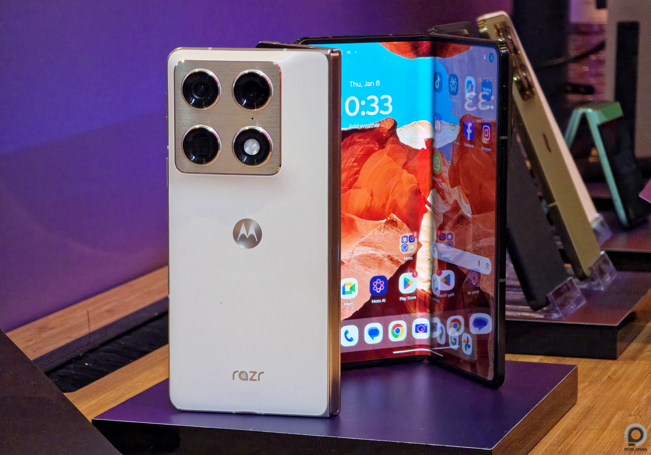 El szabad ugyanakkor mondanunk, hogy kívülre 6,56", belülre pedig 8,09"-es OLED panel kerül, megvan a Moto Pen Ultra stylus támogatás és a masszív kameraszett is, amely a hajlítható kameratrónra pályázik.