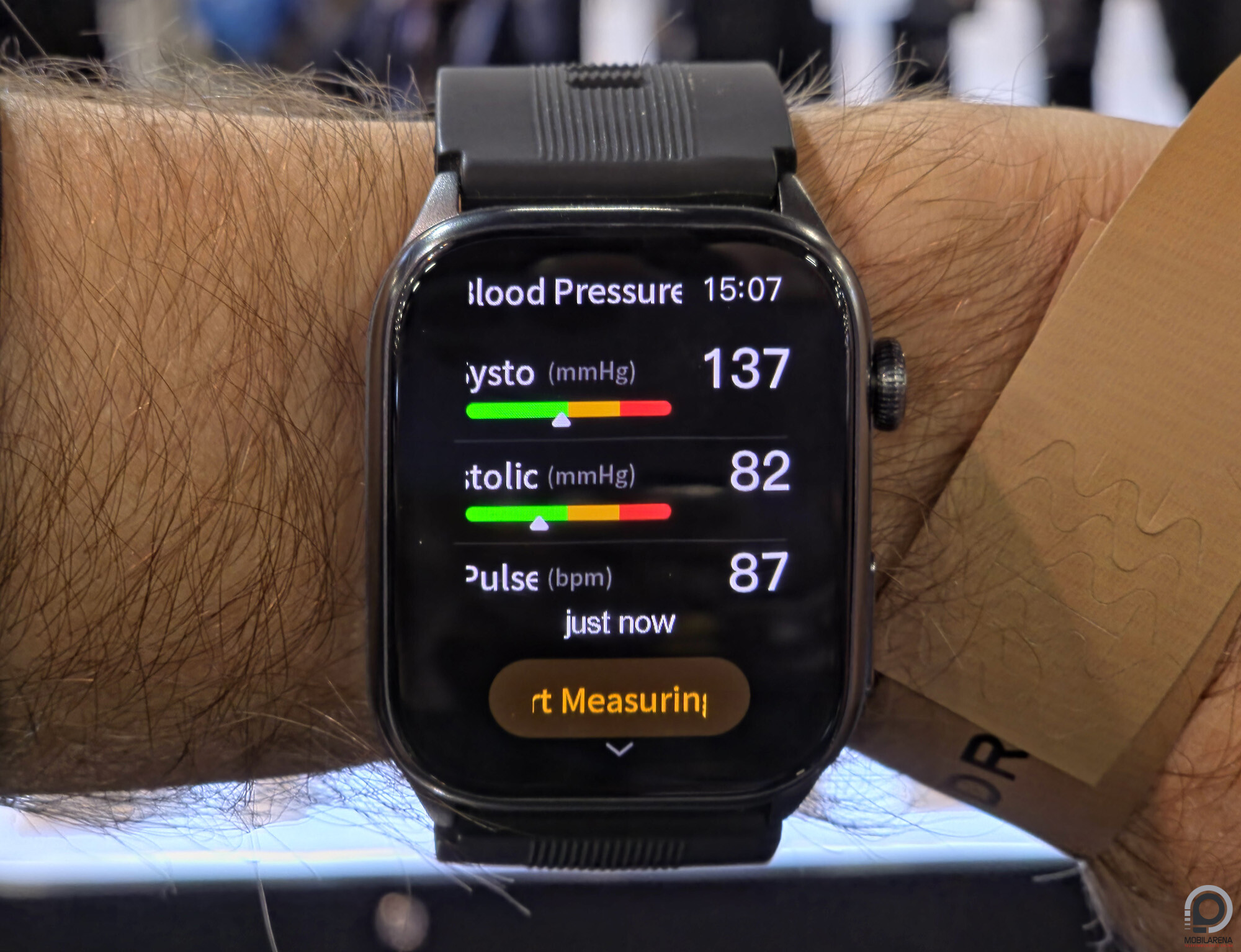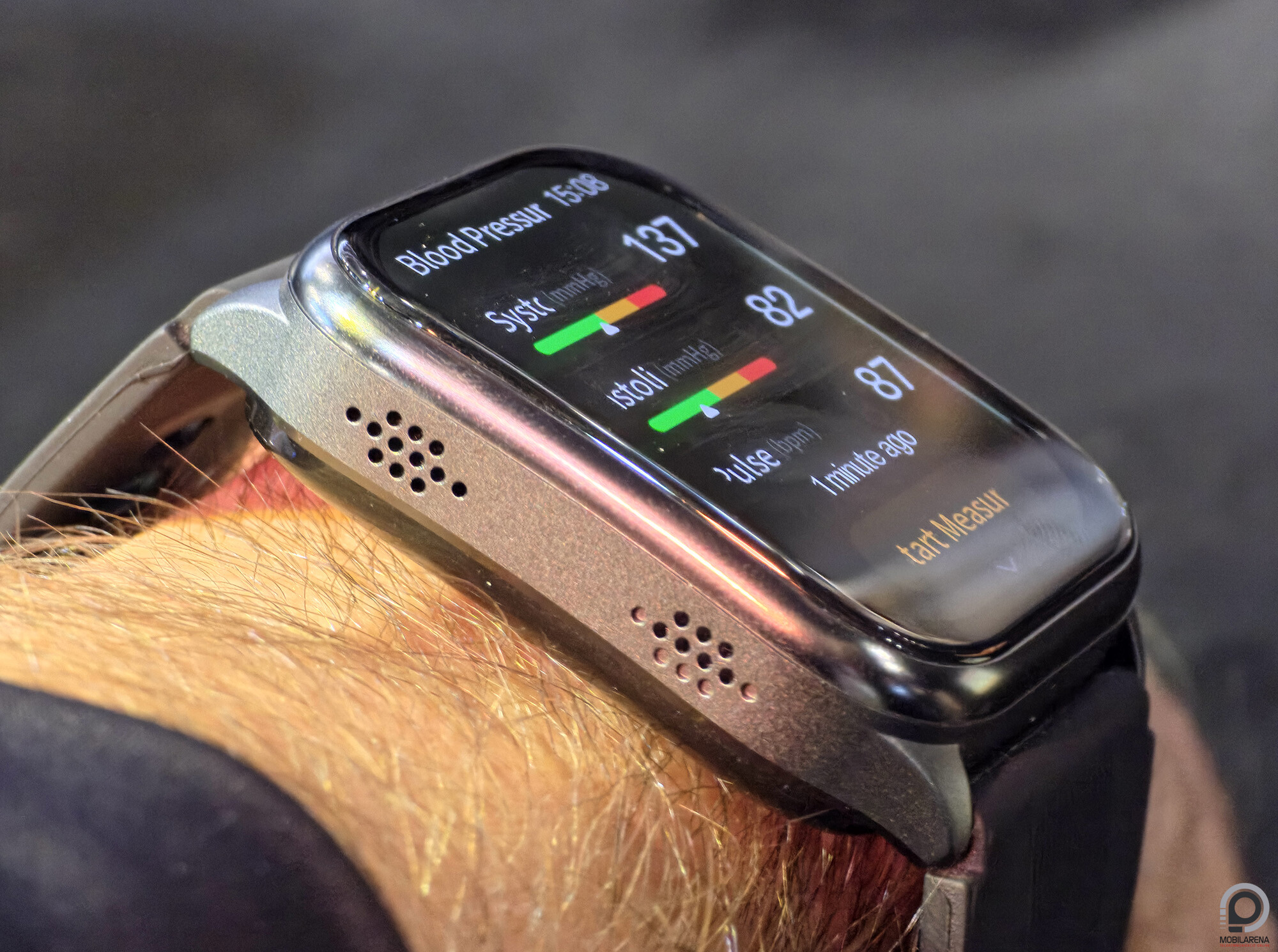 A Watch D2-höz hasonlóan persze az új rivális is jókora kellék 2,05"-es és 430 x 480 pixeles AMOLED panellel, széles pánttal és abba integrált légzsákkal. A D2-nél a demókészülék kicsit lassabban mérte vérnyomásom, de rendben lement a teszt és az értékek sem vészesek, a Dreame pedig a ROTS alapú rendszer mellett a komplett egészségügyi ökoszisztémát is az óra (és a gyűrűk) köré kódolta.