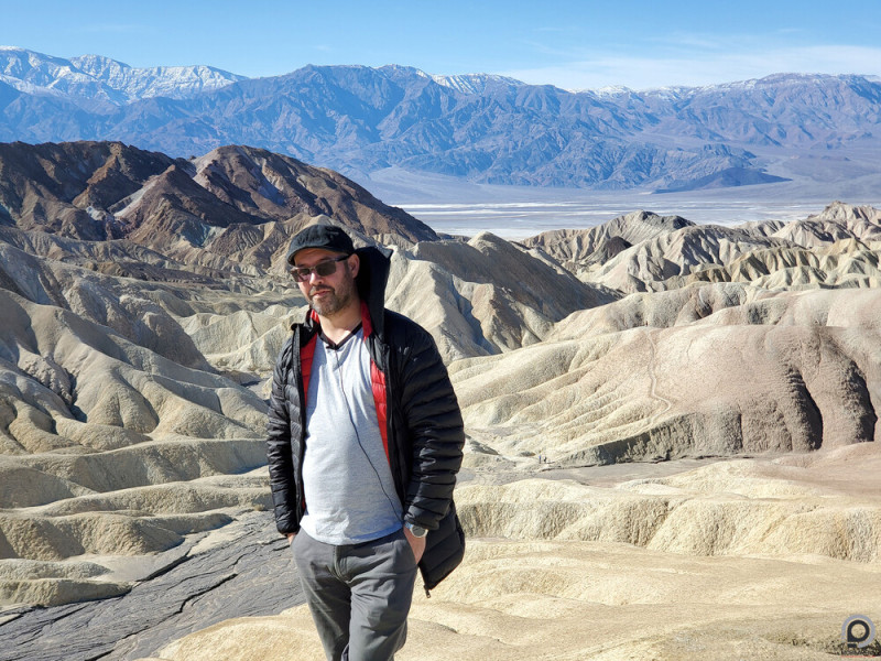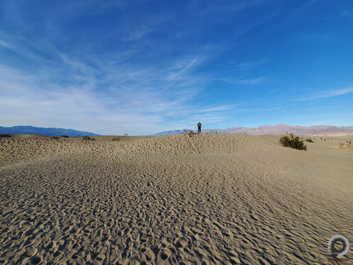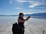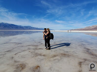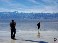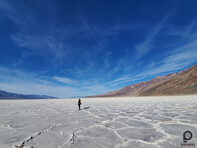 Innen pedig elzúztunk a Badwaterhez. Ez egy nagyon érdekes pont, mert az egy dolog, hogy ez az USA legmélyebben fekvő pontja tengerszint alatti 86 méteres "magasságával". És relatív ritka, hogy tényleg van is itt víz, télen egy picit gyakoribb, jártam már itt máskor is, de ennyi vizet még nem láttam benne, ami még mindig nem sok, mert szinte sík a terület alja, ezért ami tónak látszik, az inkább egy nagyon vékony vízréteg, amire kábé cipővel is rá lehet sétálni, hogy aztán kivételes hangulatú képek szülessenek.