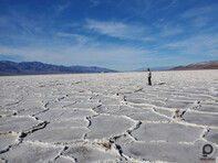 A föld itt nagyon sós, ezért az elpárolgó víz nagyon jellegzetes, geometrikus mintázatot hagy maga után, ami a Badwater egyik jellegzetessége. Igazából meglehetősen sokat kell sétálni a parkolótól addig a pontig, ahol már tocsog az ember lába a vízben, de egyrészt ebben az időjárásban ez egyáltalán nem megterhelő, másrészt pedig a táj látványa miatt az ember oda sem figyel, hogy hány ezer lépést tesz meg (oda-vissza olyan 6-7 ezer), mert annyira lenyűgöző a terület. Videó:
