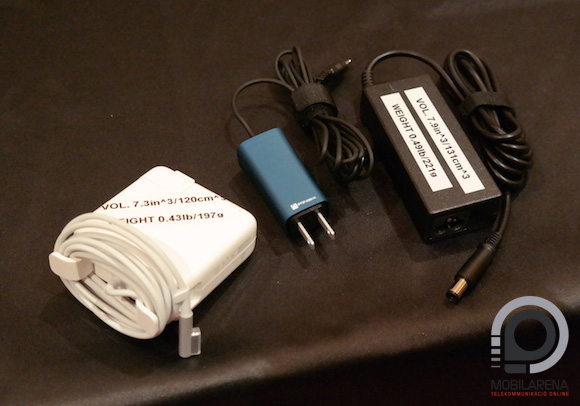 A fenti képen az a kis kék izé (ami létezik más színben is) egy univerzális notebook töltő. Ugye látszik, hogy mi a lényeg? Még az Apple egyébként nem túl méretes töltőjénél is sokkal kisebb, nem is beszélve az iparágban szokásos, adapterrel megspékelt, nehezen elcsomagolható és súlyos tartozékokkal szembeni előnyével. A FINsix nevű szerkentyű nem csak attól jó, hogy ennyivel kisebb, mint bármi más, hanem van rajta USB csatlakozó is, hogy telefont, vagy adott esetben táblagépet is etethessünk vele, erre ráadásul úgy is képes, hogy közben a notebookot is ellátja árammal. Egyelőre még nem kapható hivatalosan, valamikor az év közepén lép piacra, így az árazás sem teljesen tiszta, de az illetékesek szerint versenyképes lesz a normál töltőkkel, 90 dollár körüli összegre lehet számítani.