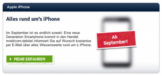 Az új iPhone premierjének várható időpontja eddig is többé-kevésbé ismert volt, hiszen számos bennfentes informátor szerint a jövevény szeptember 12-én kerül leleplezésre, melyet követően 21-én már a boltok polcain landolhat. Az értesüléseket nemrég a német Mobilecom Debitel is megerősítette hírlevelében, azt állítva, hogy az okostelefonok új generációját jelentő iPhone már szeptembertől hozzáférhető lesz. Nem kétséges, hogy a hálózatok üzemeltetői jóval a telefon leleplezése előtt hozzájutnak az első prototípusokhoz egy ellenőrzési és jóváhagyási procedúra keretében, mellyel együtt a logisztika és egyéb tartozékok – például micro- vagy nanoSIM kártyák – beszerzésének megszervezése is hosszú előkészületet igényel. Az új információk birtokában tehát már szinte biztosra vehető a szeptemberi premier, mely egyben az iOS 6 végleges változatának debütálását is jelenti.