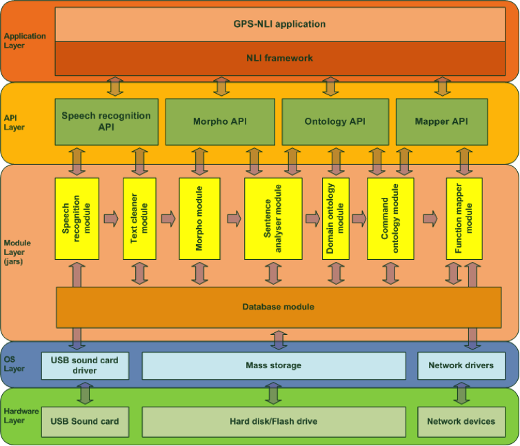 A szöveges input elemzése egy meglehetősen bonyolult és összetett folyamat, mely alfolyamatok, almodulok láncolataként kezelve oldaható meg hatékonyan. Az NLI keretrendszer logikai architektúrája a következő ábrán látható: