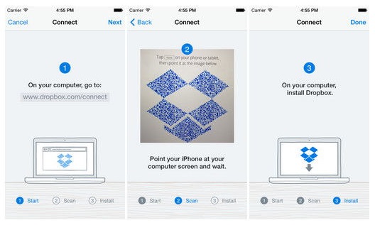 A telefonos kliensszoftver lehető legegyszerűbb beállításához mostantól a készülék kamerája is használható, melyhez csupán a számítógépes kliensben kell aktiválni a vizuális konfiguráció megjelenítését. A fájlok feltöltése a legfrissebb változatban szintén egyszerűbbé vált, ugyanis mostantól a legutóbb meglátogatott helyek között is egyetlen érintéssel feltölthetőek teljes könyvtárak is. A Dropbox 3.2 az Apple App Store online áruház kínálatában az alábbi linken érhető el.