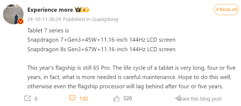 Csak arról, hogy mind az alapmodell, mind a Pro verzió 11,6 hüvelykes panellel várható, 144 Hz képfrissítéssel, a januári infóktól eltérően már Snapdragon 7+ Gen 3 és Snapdragon 8s Gen 3 szettel. Ritka pillanatok egyike, amikor a Digital Chat Station téved, igaz, azóta eltelt majd egy év. A töltésteljesítményre vonatkozó adatok is módosultak idő közben, a Pad 7 tempója 45 wattra emelkedik, a Pad 7 Pro viszont marad 67 watton.