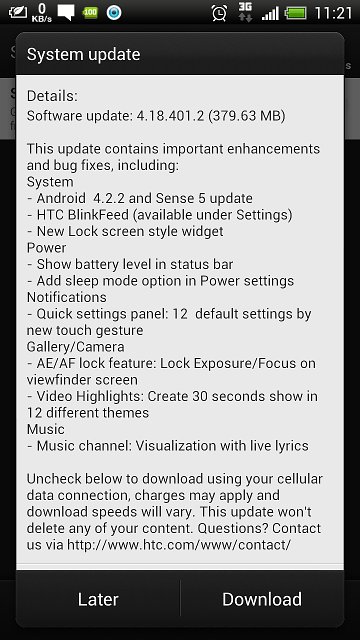 Elsőként az Európában piacra dobott HTC One modellekre vált elérhetővé a 4.1.18.401.2-es verziószámú firmware, mely az Android 4.2.2 Jelly Bean rendszerfrissítés mellett a Sense felület jóval letisztultabb, 5-ös változatát is tartalmazza A 380 megabájtos szoftver Blinkfeed támogatással és zárolt képernyőn is elérhető widgetekkel érkezik, mely mellett további újdonság az állapotsorban megjelenő töltöttségi szint indikátor, a könnyen bekapcsolható alvó üzemmód, az ujjvonásokkal elérhető tucatnyi gyors beállítás, a kamera érintésalapú fókuszálási és expozíció rögzítési funkciója, valamint a zenelejátszó dalszöveg megjelenítési képessége. A nyári szezonban a HTC kitett magáért a frissítések területén, hiszen a One és Butterfly júliusi Android 4.2.2 frissítése után egy hete a One X+ tulajdonosok is hozzájuthattak a rendszerfrissítéshez.