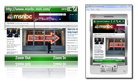 A Windows Mobile 6.1 platform egyik gyenge pontja – a korlátozott képességű MediaPlayer alkalmazáson túl – az Internet Explorer böngésző, mely bizony igen nehezen veszi fel a versenyt a konkurencia ajánlataival. Nem véletlen tehát, hogy a legtöbb WM alapú készülék előre telepítve tartalmazza a rendkívül sikeres Opera Mobile böngészőt, mely gyakorlatilag minden téren túlmutat a Microsoft kissé fapados megoldásán. A fejlesztők számára elérhető Windows Mobile 6.1.4 emulátor azonban már a legújabb Internet Explorer Mobile 6 böngészőt tartalmazza, mely úgy tűnik igen komoly előrelépést jelent a korábbi fapados verzióhoz képest. Az új böngésző végre helyesen tördeli a bonyolult oldalakat is, képes a hosszabb szövegeket az képernyő adottságainak megfelelően áttördelni, jobb AJAX és JavaScript támogatást kapott (JScript v5.7 megoldás az Internet Explorer 8-ból) valamint multimédiás téren is sokat fejlődött az Adobe Flash Lite 3.1 integrációval. A kezelőfelület is előnyére változott, mely több nagyítási fokozatot, egyszerűbb asztali és áttördelt nézet közötti váltást, ujjal történő kényelmes görgetést is lehetővé tesz. Az emulátor a Microsoft fejlesztői oldalán érhető el, de használatához Visual Studio 2005 vagy 2008 szükséges.