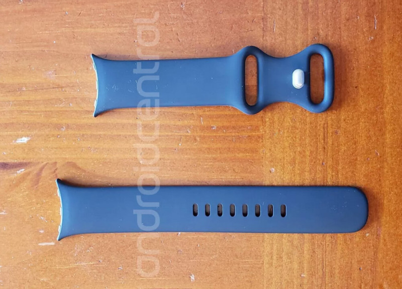 Nem egyértelmű egyelőre, hogy az első képen a töltőport látható-e és/vagy a hátlapi Qi töltés támogatott lesz-e, mindazonáltal szemügyre vehető az egyedi csatlakozású pánt, azaz a Pixel Watch, ha tényleg ilyen formában érkezik, nem támogatja majd a hagyományos 20/22 mm-es szabványokat.