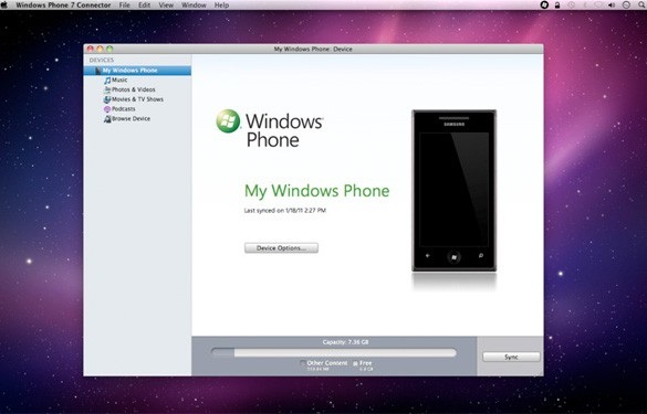 Elkészült az októberben bemutatott Windows Phone 7 Connector végleges változata, mely az Apple számítógépeivel is egyszerűvé teszi a WP7 alapú modellek szinkronizálását. Az Mac App Store online áruházból ingyen letölthető végleges kiadás új szolgáltatással nem bír, vagyis elsősorban névjegyzék, illetve zenék és videók szinkronizálására hivatott, de említést érdemel az iTunes támogatása is. A windowsos változattól eltérően az Apple Mac számára fejlesztett kiadás nem tartalmazza a Zune klienst, vagyis a Microsoft saját zenei szolgáltatása egyelőre nem került átdolgozásra.