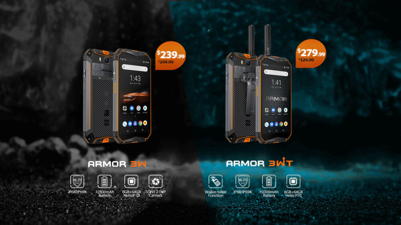 Az Amor 3W / 3WT lelke a nyolcmagos MediaTek Helio P70 6 GB RAM-mal felvértezve, és a két nanoSIM mellé harmadikként külön helyen bújhat védett házba a microSD kártya. A B20-as LTE sáv adott, akárcsak az ujjlenyomat-olvasó oldalt, plusz mindenféle eszköz a dobozban és az Android 9.0 Pie a 64 GB-os tárolón. Az előlapi kamera 8 megapixeles, a hátlapi pedig 21-et kínál ugyanebből, a Sony tarsolyából, f/1,8-as rekeszértékű lencsével és PD-autofókusszal. Az Armor 3W szeptember 30-áig 240 dollárért rendelhető elő, az Armor 3WT pedig 280 dollárért.