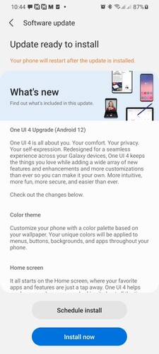A vadonatúj, Android 12 rendszerre épülő One UI 4.0 tárhelyből leválasztott, virtuális RAM-bővítéssel (akár 4 GB-tal), Material You témákkal, októberi biztonsági csomaggal, új widegetekkel, javított videótelefonálási hangminőséggel és számos egyéb aprósággal érkezik, viszont ne feledjük: béta lévén üzemszerűen találkozhatunk benne hibákkal, csak ennek tudatában érdemes telepíteni.