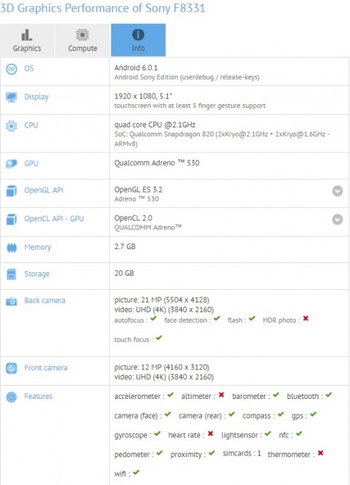 A Sony komolyabban átgondolja az okostelefonos stratégiáját, főleg az amerikai piacon, ahol egyáltalán nem teljesítenek jól. Ugyan az USA-ban csak a múlt hónapban vált elérhetővé az Xperia X, úgy tűnik, hogy hamarosan ennek már az örökösét vásárolhatja meg a felhasználó, legalábbis ha hihetünk a GFXBench adatbázisának. Az egyelőre csak Sony F8331 modellszámon futó mobil Snapdragon 820 chipsetet kapott, RAM-ból 3 gigabájt jutott, a kijelző pedig 5,1 hüvelykes és Full HD felbontású.