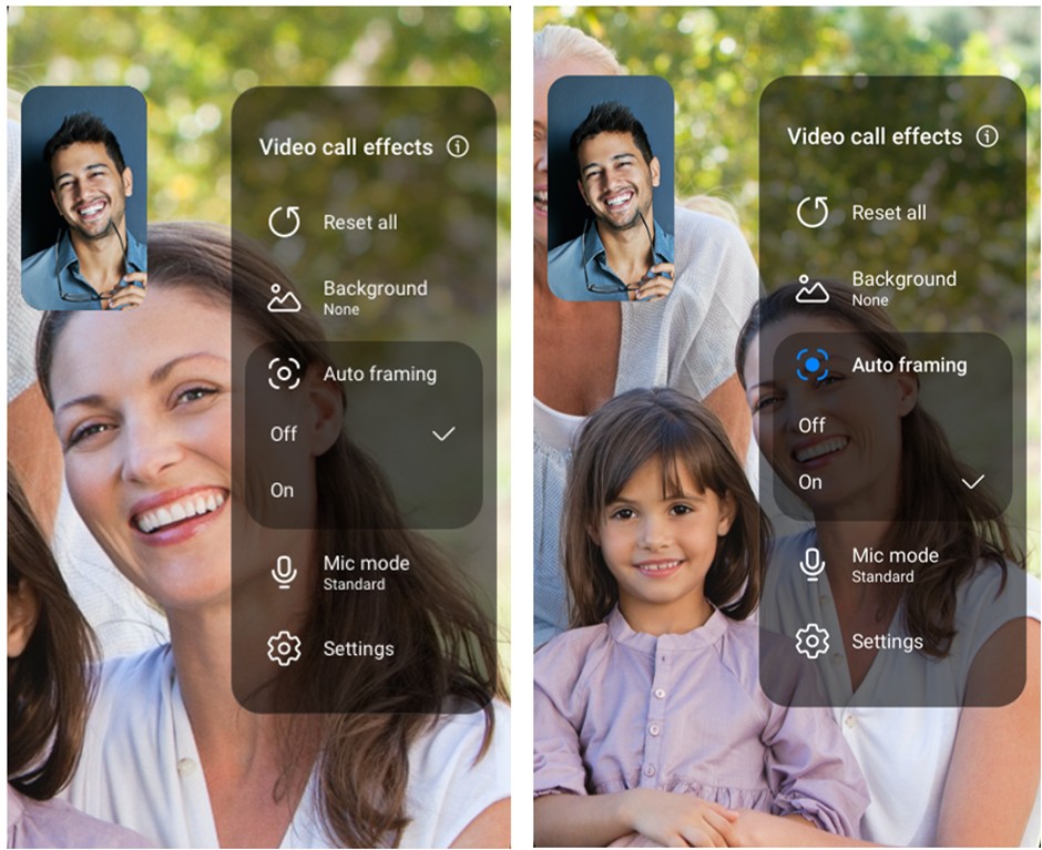 Javított effekteket kap a videóhívásokhoz az S20-széria és az S20 FE, az S21-széria és S21 FE, a Note20-széria, valamint az összes Z-szériás eszköz az első Fold kivételével. A funkció segíti, hogy a Duo, Google Mert, Knox Meeting, Messenger, Microsoft Teams, WhatsApp, Zoom, Webex, BlueJeans és KakaoTalk alkalmazásokban a felhasználónak nagyobb kontrollja legyen a telefon kamerája, mikrofonja, és a hívásban megjelenő háttér felett. A funkció még 2022 első felében megérkezik majd az S10-szériára, az S10 Lite-ra, a Note10-szériára és a Note10 Lite-ra is.