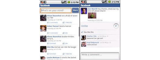 Habár a legtöbb mobiltelefon beépített böngészője, illetve akár Opera Mini segítségével is elérhető a Facebook mobilos oldala, legtöbb platformra már elérhetővé vált egy önálló kliensszoftver, mely egyszerűbb használatot és gyorsabb működést kínál, valamint bizonyos esetekben a készülék készenléti kijelzőjének szerves részévé is válhat. Az iPhone, BlackBerry, Windows Mobile, Symbian és Palm változat bemutatása után hamarosan hivatalosan is elérhető lesz a Android alapú készülékekre szánt kliens, mely a készenléti kijelzőbe is beépülni látszik. A Facebook alkalmazás pontos megjelenési dátuma egyelőre nem ismert, de napokon belül elérhetővé válhat.