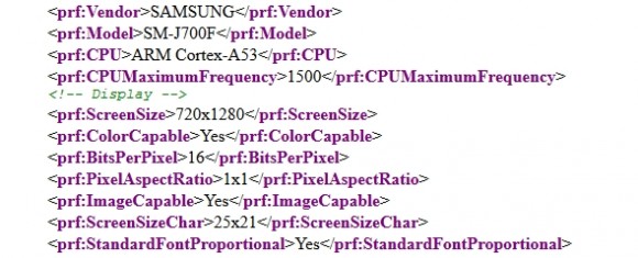 Egy sor információt lehet kiszedni az adatösszességből, az egyelőre SM-J700F kódnéven szereplő masina processzora energiahatékony Cortex-A53 magokat tartalmaz, melyek 1,5 GHz-en pörögnek. Az is jól látható, hogy a kijelző 720 x 1280 pixel felbontású, ezek a képpontok minden bizonnyal egy 5,5 hüvelykes megjelenítőn terülnek majd el.