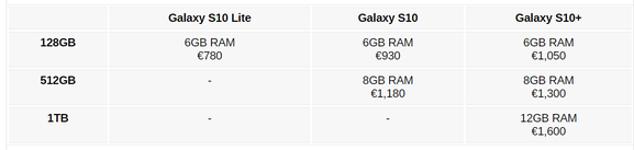 Az olaszok szerint több RAM, instant nagyobb belső tárhelyet is jelent, ami nyilván pénzben is kifejezhető eltérés az egyes variánsok között. Az S10 Lite kizárólag 6 GB rendszermemóriával és 128 GB belső tárhellyel olyan 240 ezer forint lesz, az Galaxy S10 6/128 GB-os kiszerelésben 295 ezer forint körül alakul, 8/256 GB-tal viszont már 375 ezert pénzt kell fizetni érte. 12 GB rendszermemóriát kizárólag az 1 terabájtos S10+ kínál majd, ami kicsit fog csak többe kerülni, mint fél millió forint.