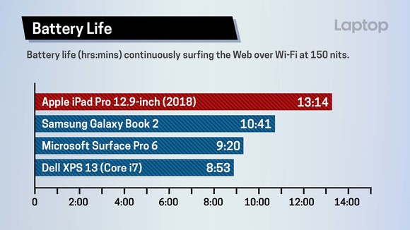 Az AnTuTu a processzor mellett a GPU, a tároló, a memória és a felület tevékenykedését is vizsgálja, és itt az iPad Pro 550000 pont fölött gurított, jócskán előrelépve az XS Max processzoros eredményéhez képest, és lendületből ráduplázva annak grafikus teljesítményére, amiért a hétmagos, házi fejlesztésű GPU felel. A LaptopMaget persze az érdekelte, hogy produktivitásban mit tol az iPad Pro, és a 12.9"-es modell 12 perces 4K videó átkonvertálásában még a Core i7-es laptopoknak és a MacBook Prónak is odapakolt.