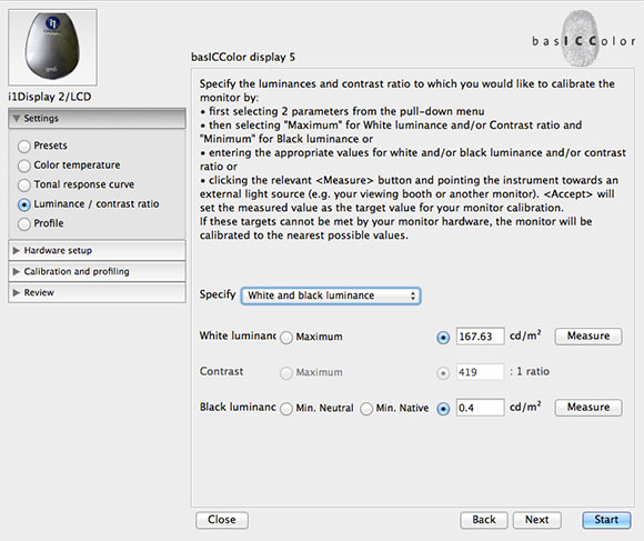 A metodika szögegyszerű, egy teljesen fehér képet teszünk rá a kijelzőre, aztán rámegyünk az eszközzel. Ez egy ponton mér csupán, de elvileg a fényerősség egy normális eszközön állandó, mindenesetre a kijelző közepét méregetjük, az a tuti. Nyilván arra is jó, hogy kontrasztarányt is számoljunk, egy csont fekete képet is meg tudunk mérni, a kettőből pedig összerakható ez az érték is.