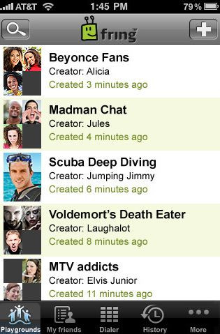 A négyfős videóhívás mellett egy új ingyenes videószolgáltatással bővült a Fring kínálata, mely tematikus chat szobák révén ismerősökkel és idegenekkel is lehetővé teszi a kapcsolatteremtést. A Google+ Hangout szolgáltatásához hasonló Fring Playground elsődleges célja a szöveges csevegésnél kényelmesebb és természetesebb kapcsolatteremtés lehetőségének megteremtése, mely révén ráadásul új ismerősök szerzésére is lehetőség nyílik. Az ingyenes alkalmazás tetszőleges iOS és Android alapokon nyugvó készülékre elérhető, ráadásul a Skype-tól eltérően a csoportos hívásokért sem kell felárat fizetni.