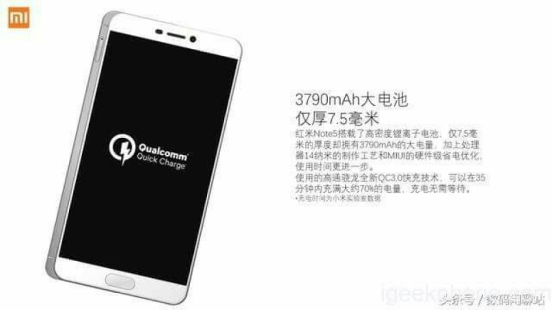 A feltételezett Redmi Note 5-nél két szembetűnő eltérés tűnik fel először az eleve jól sikerült elődmodellhez képest. Az egyik a Qualcomm új, 14 nanométeren gyártott felső-középkategóriás lapkakészlete, amely négy 2,2 GHz-re, illetve további 4 1,85 GHz-re skálázott Kryo magot tartalmaz. A Snapdragon 660 mellett elvileg marad a 3 vagy 4 GB operatív memória, 32 vagy 64 GB belső tárhellyel. Valamint hasonló konstrukcióban egy Snapdragon 630-as modell sem kizárt, ahol az órajel megegyezik, viszont Cortex-A53-as magokból épül fel. A TheLeaker nevű oldal viszont tízmagos MediaTek Helio X25-ös variánst emleget, minden más azonban megegyezik. Kivéve, hogy ők 4.0-s Quick Charge szabványról tudnak.