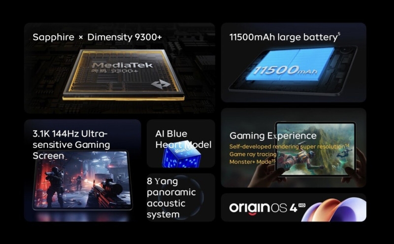 A Pad2 Pro Dimensity 9300+ csúcslapkával dolgozik, a Pad2 pedig beéri a Snapdragon 8s Gen 3-mal és maximum 12/512 GB-os memóriacsomaggal, míg a Pro esetében választható 16 GB rendszermemória is. A Pro ezen kívül hat helyett nyolc hangszórót kínál, 13 megapixeles főkamerát és 8 megapixeles előlapi egységet, szemben az alapmodell 5 és 8 megapixeles kameraszettjével. Tölteni is gyorsabban lehet és az akksi is nagyobb, ami 11500 mAh-t és 66 wattos töltésteljesítményt jelent, míg a Pad2 esetében 10000 mAh-ról és 44 wattról beszélhetünk.