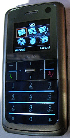 We could have already seen Mio's interesting prototype at CES, which is a conventional phone on one side, while it's a touchscreen GPS on the other. Another interesting feature of Mio Leap K1 is that the frontal camera is in fact the main camera, as the display of the GPS part is in use when taking pictures. The Windows Mobile 6.1-based device has a 400 MHz Samsung 2443 CPU, 64 MB RAM and 2 GB of internal memory. The handset, that supports GPRS and EDGE, has a main touchscreen display of 240 x 320 pixels resolution. Unfortunately the resolution of the camera and the phone-side display are not yet known.