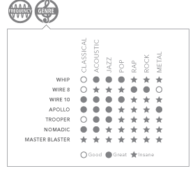 Szintén a csomagolásról tudtuk meg, hogy a Drótból is két változat létezik, a Wire 9 nevű akusztikus, jazz és pop zenéhez különösen ajánlott, de jól szól rajta a klasszikus, a rap és a rock is, a Wire 10 pedig gyakorlatilag pont az ellenkezője, metálhoz, rockhoz és raphez ajánlja a gyártó, de használható akusztikus zenéhez, pophoz és jazzhez is. Nálunk ez előbbi járt, aminek én örültem, mivel alapvetően a lágyabb muzsikákat részesítem előnyben. Mindenesetre jópofa dolog ez a "specializálódás", mindenki olyan "célfülhallgatót" választhat magának, amelyik az általa hallgatott zenékhez jó.