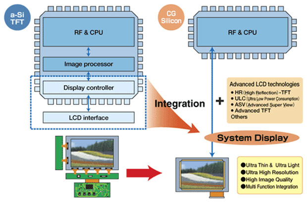 A Sharp már hónapokkal ezelőtt bemutatta az első, kifejezetten óriásmobilokba szánt Full-HD megjelenítőjét, mely a hüvelykenkénti 443 képpont felbontásával messze maga mögé utasítja az Apple „retina” kijelzőjét. A japán cég közleménye szerint a hatalmas képpontsűrűség elérése a CG-szilícium technológia bevetésének köszönhető, mely azóta sorozatgyártásra is alkalmassá vált. A japán CEATEC szakkiállítás során „piacérett” állapotában is kiállításra kerülő 5 hüvelykes panelek rövidesen Android-alapú készülékekben is elérhetőek lesznek, az persze egyelőre erősen kérdéses, hogy kinek és miért van szüksége ilyen kis méretben 2 millió képpontos, azaz 1080 x 1920 pixeles felbontásra.