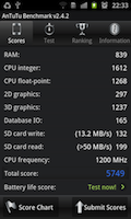 | Linpack for Android (multi) | 54,958 MFLOPS / 3,07 s | 59,536 MFLOPS / 2,84 s | 87,619 MFLOPS / 1,92 s |