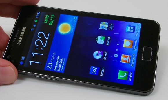 Az egyetlen negatívum a felbontás: a 800 x 480, azaz WVGA már kezd kimenni a divatból, a felső kategóriában ugyanis szépen lassan a 960 x 640, azaz a qHD veszi át a helyét. Bár véleményem szerint a WVGA felbontás bőven elég egy ekkora panelre, a méretnövekedés miatt a point per inch, azaz a hüvelykenkénti képpontok száma alacsonyabb, mint a 4 hüvelykes Galaxy S-en, amelyen ez az érték 233 ppi, míg az utód csak 218 ppi-vel büszkélkedhet, az iPhone 4 pedig 326 ppi-vel rendelkezik. Érdemes még megemlíteni, hogy a kijelző Gorilla Glass technológiával készült, azaz jobban ellenáll a karcolásoknak és egyéb sérüléseknek, mint egy klasszikus panel.