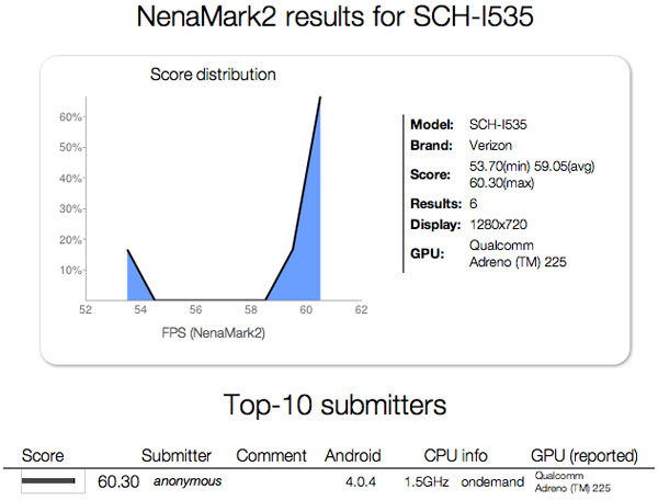 Pletykák szerint a CDMA és EV-DO hálózatokat üzemeletető amerikai Verizon Wireless kínálatában négymagos Exynos helyett kétmagos Qualcomm Snapdragon S4 processzorral debütálhat a Samsung idei Android csúcsmodellje, melyet egyelőre megerősíteni látszik a NenaMark2 tesztszoftver adatbázisa is. Ez persze egyelőre csupán puszta spekuláció, de az SCH-i535 sorszám egyértelműen CDMA hálózati támogatásra utal, míg az 1,5 GHz-es kétmagos Snapdragon S4 processzor és a 4G LTE hálózati támogatás a felsőbb mezőny célba vételét jelentheti. A dél-koreai gyártó esetén természetesen egyáltalán nem lenne meglepő az eltérő szolgáltatói modellek létrehozása, hiszen már korábbi készülékekből is léteztek olyan szolgáltatói vagy regionális változatok, melyek AMOLED helyett TFT kijelzővel, Exynos helyett pedig Qualcomm processzorral kerültek kiadásra.