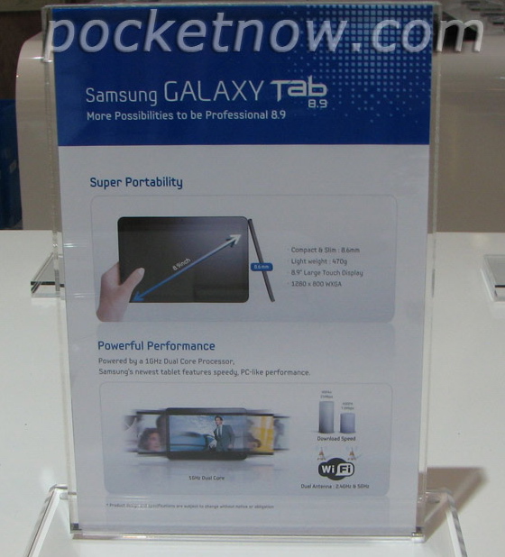 Újabb képeken is felbukkant a néhány órán belül kezdődő, CTIA Wireless 2011 alkalmával hivatalosan is leleplezésre kerülő Samsung Galaxy Tab 8.9, mely a mindössze 8,6 milliméteres vastagságával az iPad 2-nél is karcsúbbra sikerült. Az egyelőre ismeretlen üzemidővel rendelkező, mindössze 470 grammos készülék az alant látható képek tanúsága szerint 1280x800 képpontos kapacitív multitouch érintőkijelzőt, kétmagos processzort, és egyedi Samsung kezelőfelületet kapott. A várhatóan Európában és Észak-Amerikában is piacra kerülő, Android 3.0 Honeycomb alapú készülék várható árával kapcsolatban egyelőre nincs információ.