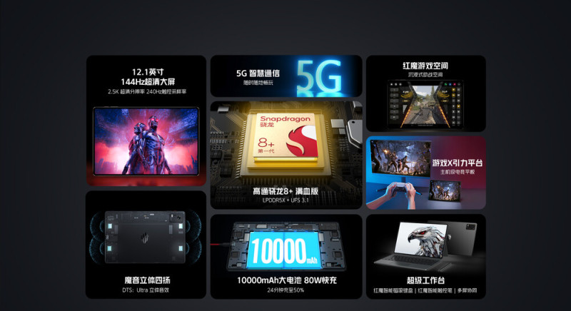 A Red Magic 8S Pro széria hardveresen és dizájnban is erős ajánlat, a gamer táblagép pedig a szoftveres extrákkal tűnhet ki a 12,1 hüvelykes tabletek kínálatából. A simán csak Red Magic Gaming Tabletnek nevezett eszköz a ZTE Axon Pad átbrandelt változata a Nubia Red Magic OS 8.0-s felületével, ami az összes olyan funkciót biztosítja nagyobb formában, amit a Red Magic 8S Pro, például a multiplatform kompatibilitást a perifériákkal, a vezetékmentes képernyőtükrözést és a streaming opciókat.